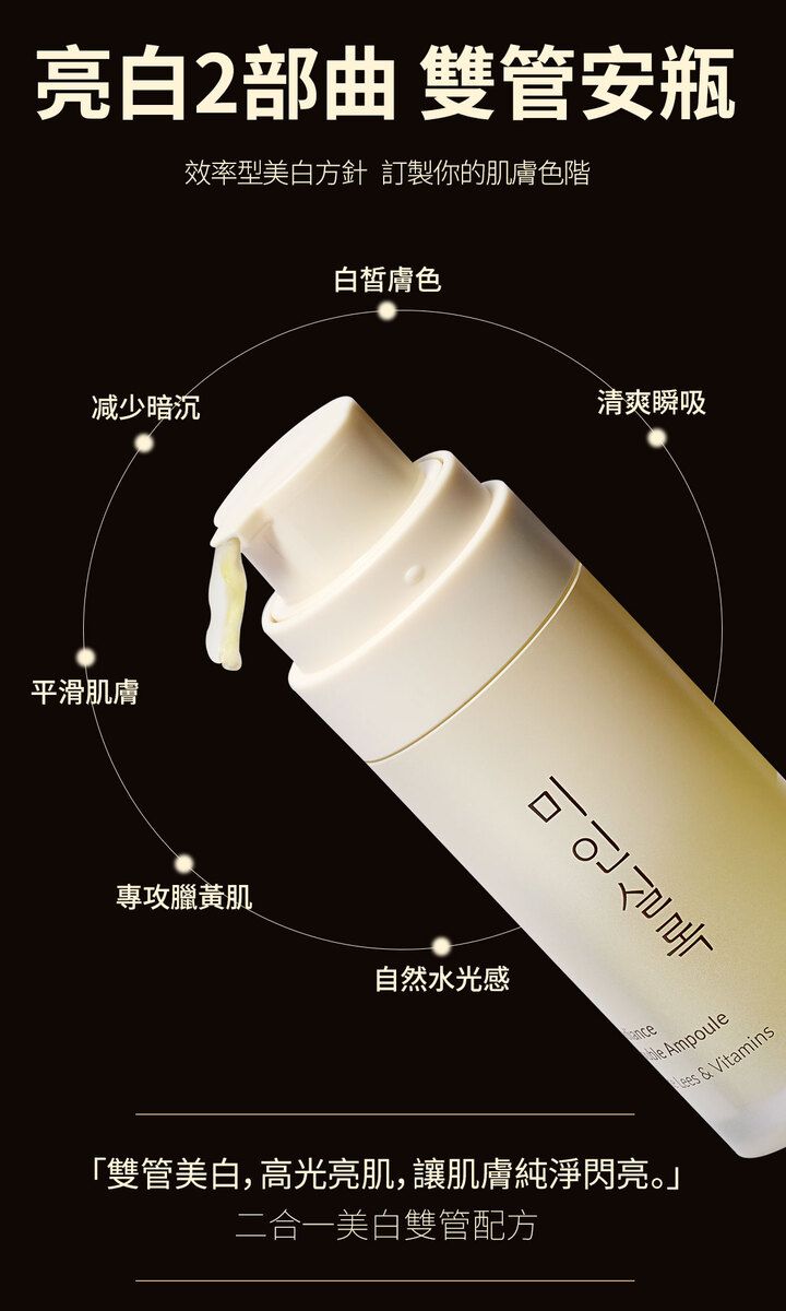 雙管美白,高光亮肌,讓肌膚純淨閃亮